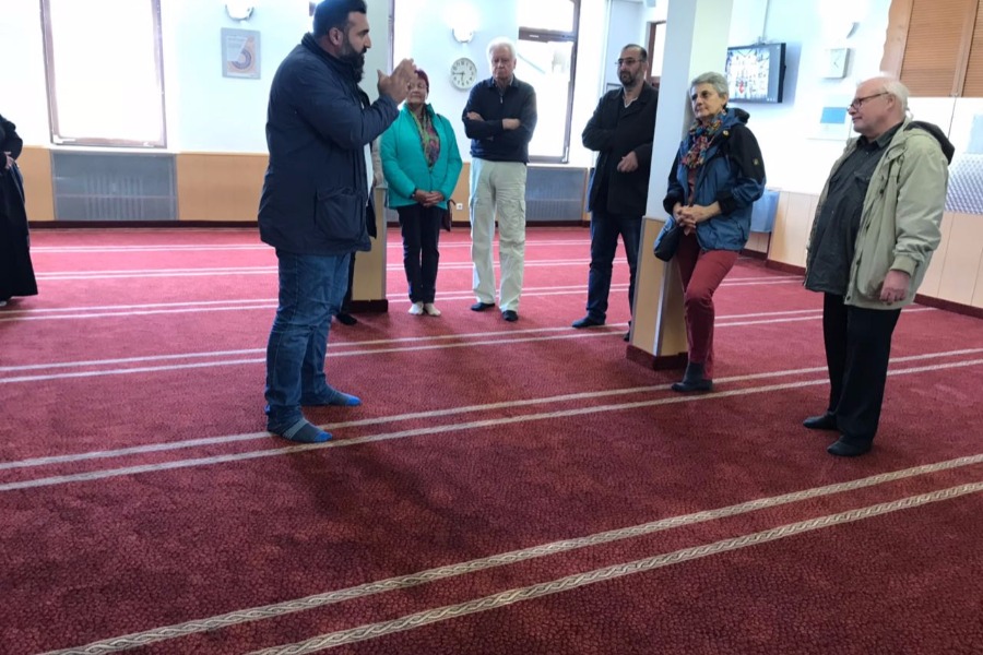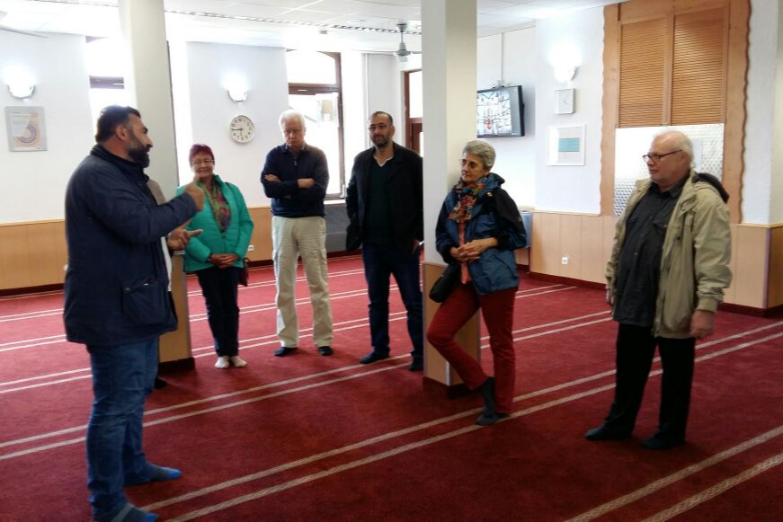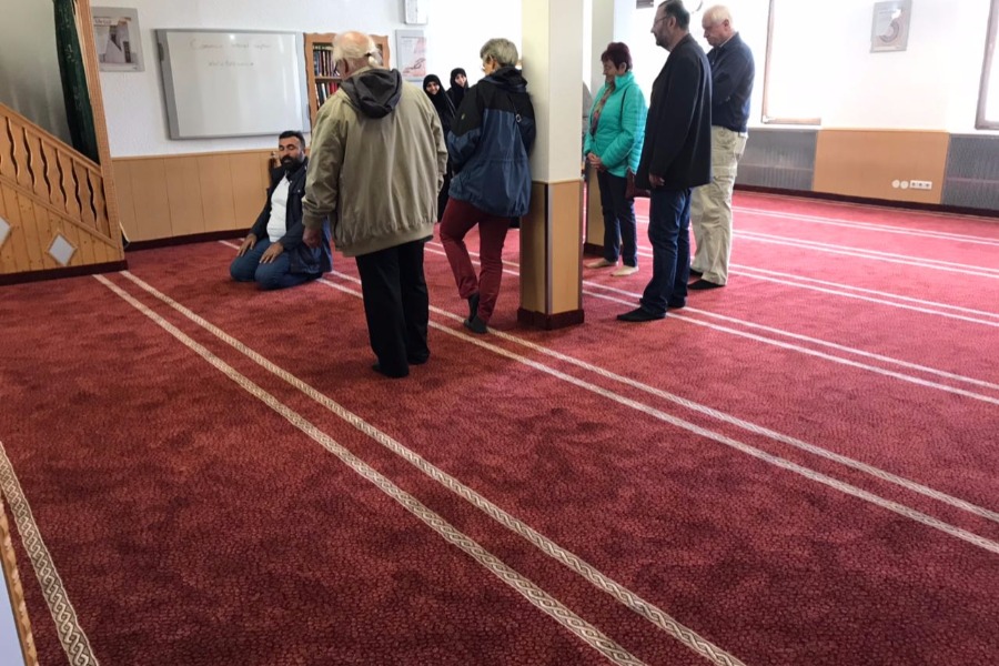Gemeinsam unterhielten sich unsere Gäste mit der Gemeinde bei einem Tee und erfuhren mehr über die Moschee.