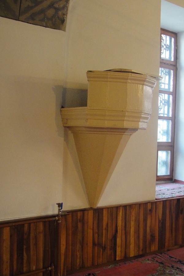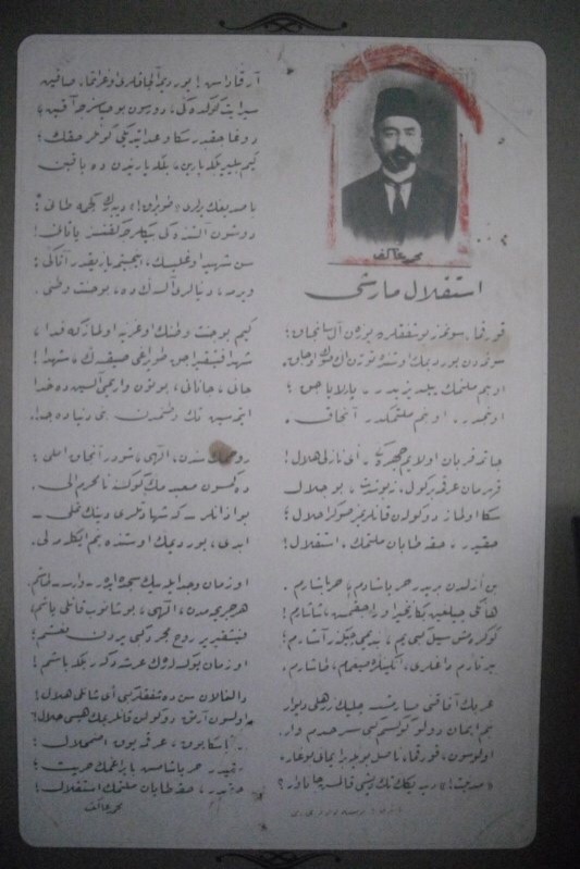 Mehmet Akif Ersoy'un vaaz verdiği kürsü.-Nasrullah Camii ve Osmanlı'da kullanılan Arap alfabesiyle yazılmış İstiklal Marşı
