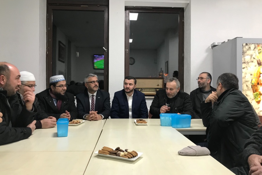 26.11.2017 Pazar günü Yatsı namazında İGMG Genel Başkanımız Kemal Ergün Hocamız ve beraberinde Bölge Başkanımız Şerif Aslan Bölge İrşad Başkanı Nihat Çiftçi Hocamız bizlere sürpriz bir ziyarette bulundular , Teşkilat İçi Eğitim Seminerleri (TİES) sorumllularıyla Walldorf Mevlana Camii’nde bir araya gelen Genel Başkanımız oradaki toplantının ardından Worms şubemize uğrayarak yatsı namazının akabinde cemaatimizle hasbihal ettikten sonra ,Başkanımız Uğur Yücel ve Camii’mizin sekteri ve aynı zamanda Dış ilişkiler sorumlumuz Aydın Geçgel’den Camiimizin hakkında bilgiler aldılar.Genel Başkanımız Gençlik teşkilatımızın hazırlamış olduğu videoyu cemaatimizle beraber çay ocağında izledikten sonra camimizden ayrıldı , Allah kendilerinden razı olsun.Âmin