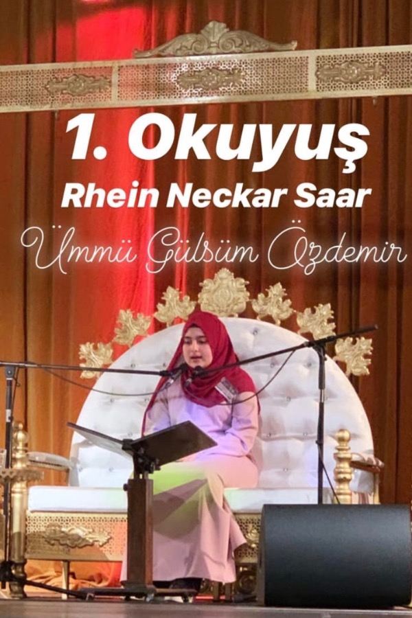 İGMG Kadın Teşkilatı 15. Avrupa Kuran-ı Kerim Tilavet yarışmasının 10-13 yaş arası küçükler kategorisinin birincisi Rhein-Neckar-Saar eyaletimizi temsil eden, Worms Fatih Camiimizin kızı Ümmü Gülsüm Özdemir (Zeki Hocamızın kızı) olmuştur.